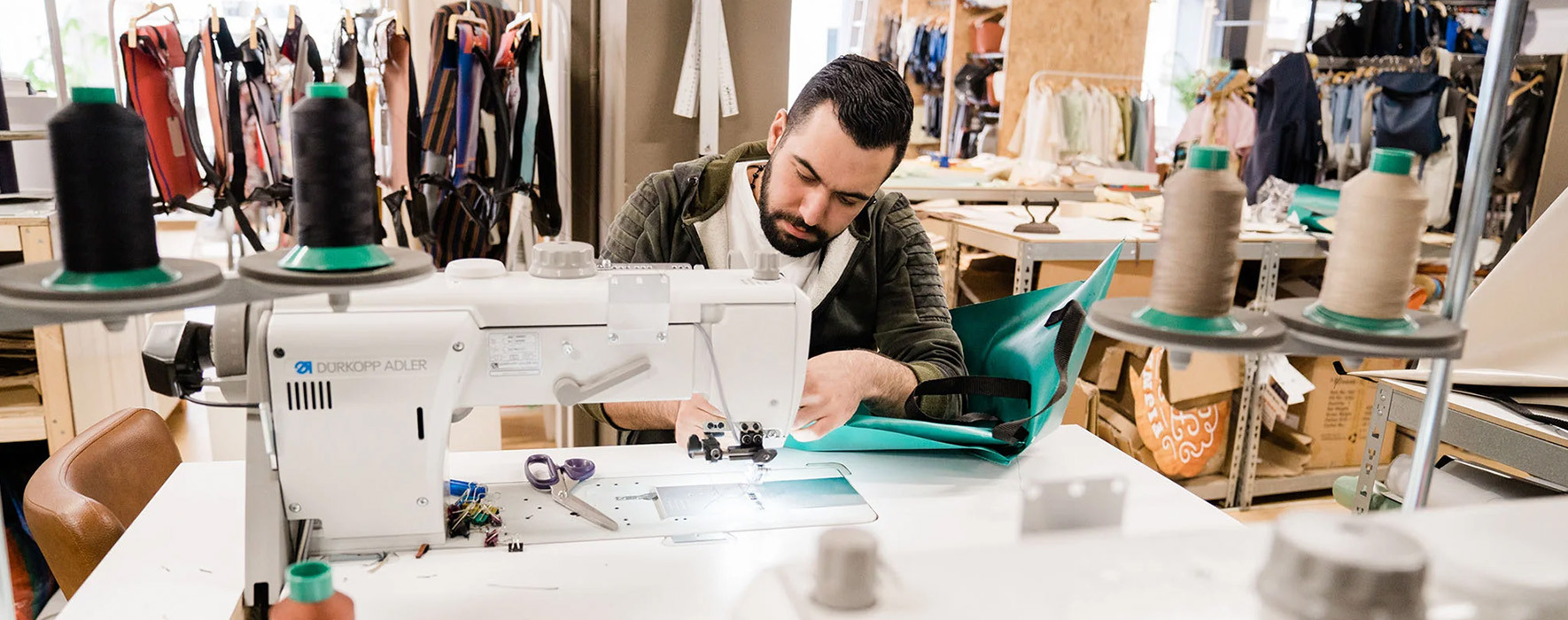 Fraenck ist eine niederländische Marke, die sich auf die Wiederverwendung von Materialien spezialisiert hat. Neben ihrer eigenen Kollektion entwerfen sie auch für namhafte Auftraggeber wie Bever, Zeeman und die NS. Bei Bever gibt es eine Sammelstelle für alte Ausrüstung, die zum Wiederverwenden bestimmt ist. Für Zeeman hat das Team von Fraenck eine komplette Kleidungskollektion aus alten Einkaufstüten geschaffen, und für die NS wurden ausgediente Bannerstoffe zu neuen Taschen und Reiseaccessoires verarbeitet.